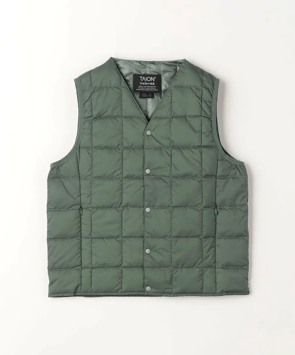 這款我也有買給兒子,當時為了要去0-5度的日本,需要一些輕暖好攜帶的禦寒單品,這件當時派上用場!而且不穿放包包也很好塞。這款是Taion最經典的基本款,V領設計很適合當內膽,單穿也很好搭配。