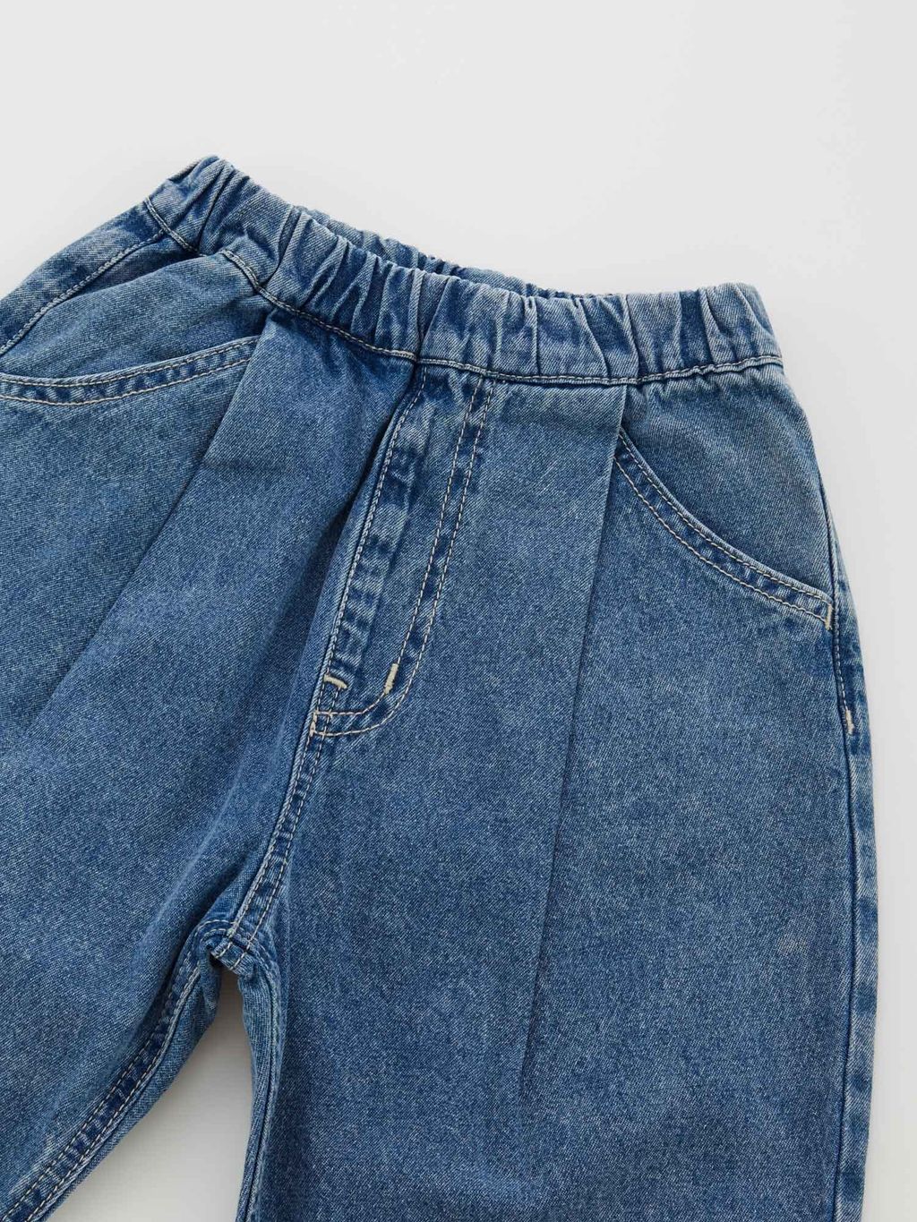 人氣款升級版!全新牛仔布,深褶設計,輪廓休閒。不僅方便活動,更因褶皺設計而保持時尚精緻,錐形下擺打造流線型外觀,全長版型,易於搭配,是日常穿著的理想之選。腰部寬鬆適中,非常適合活潑好動的孩子。