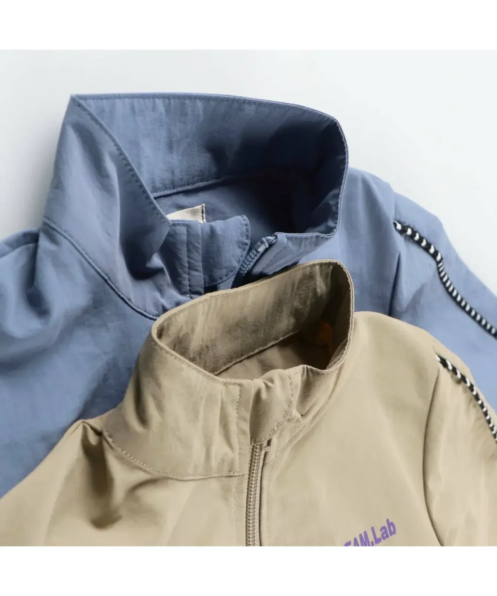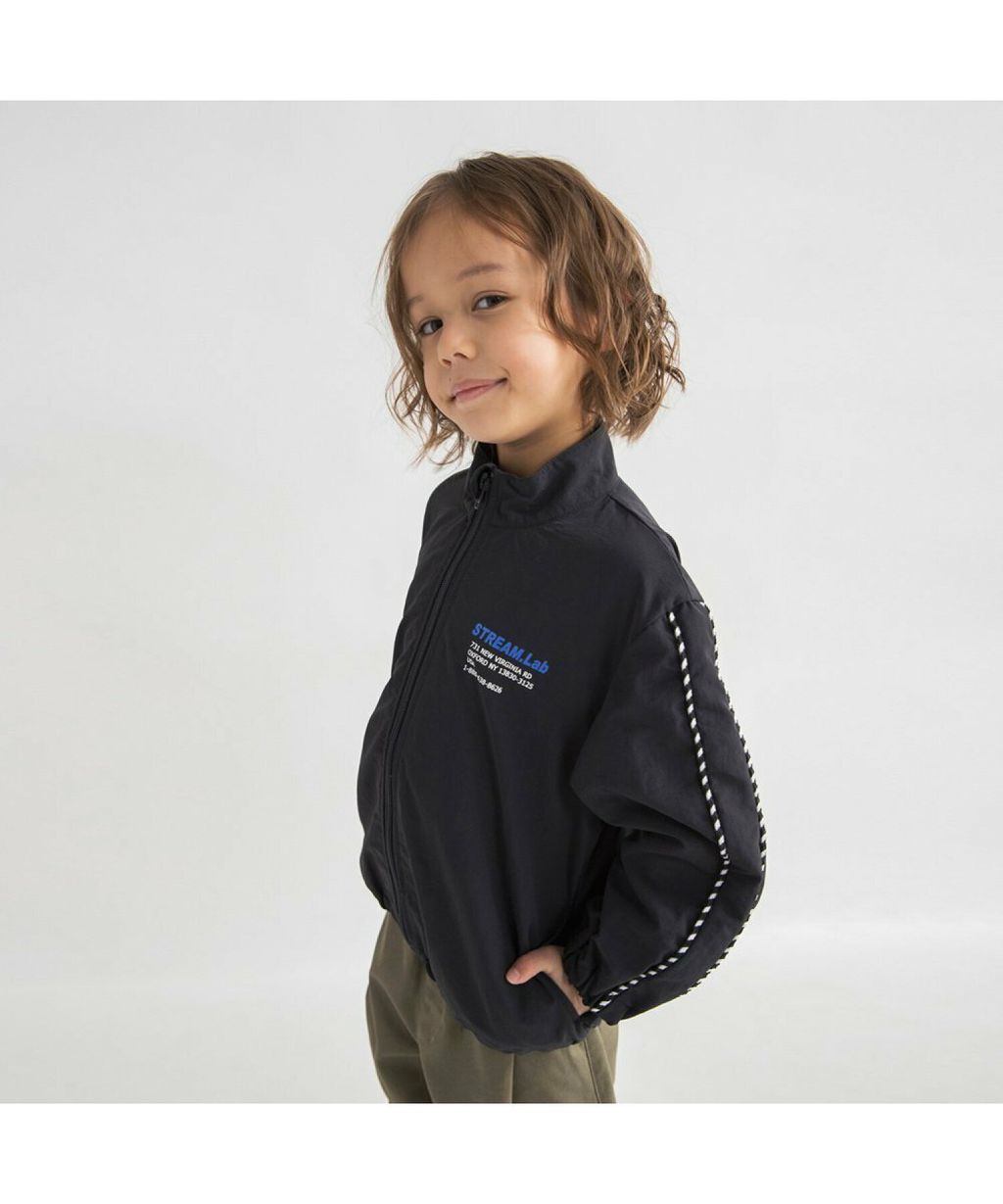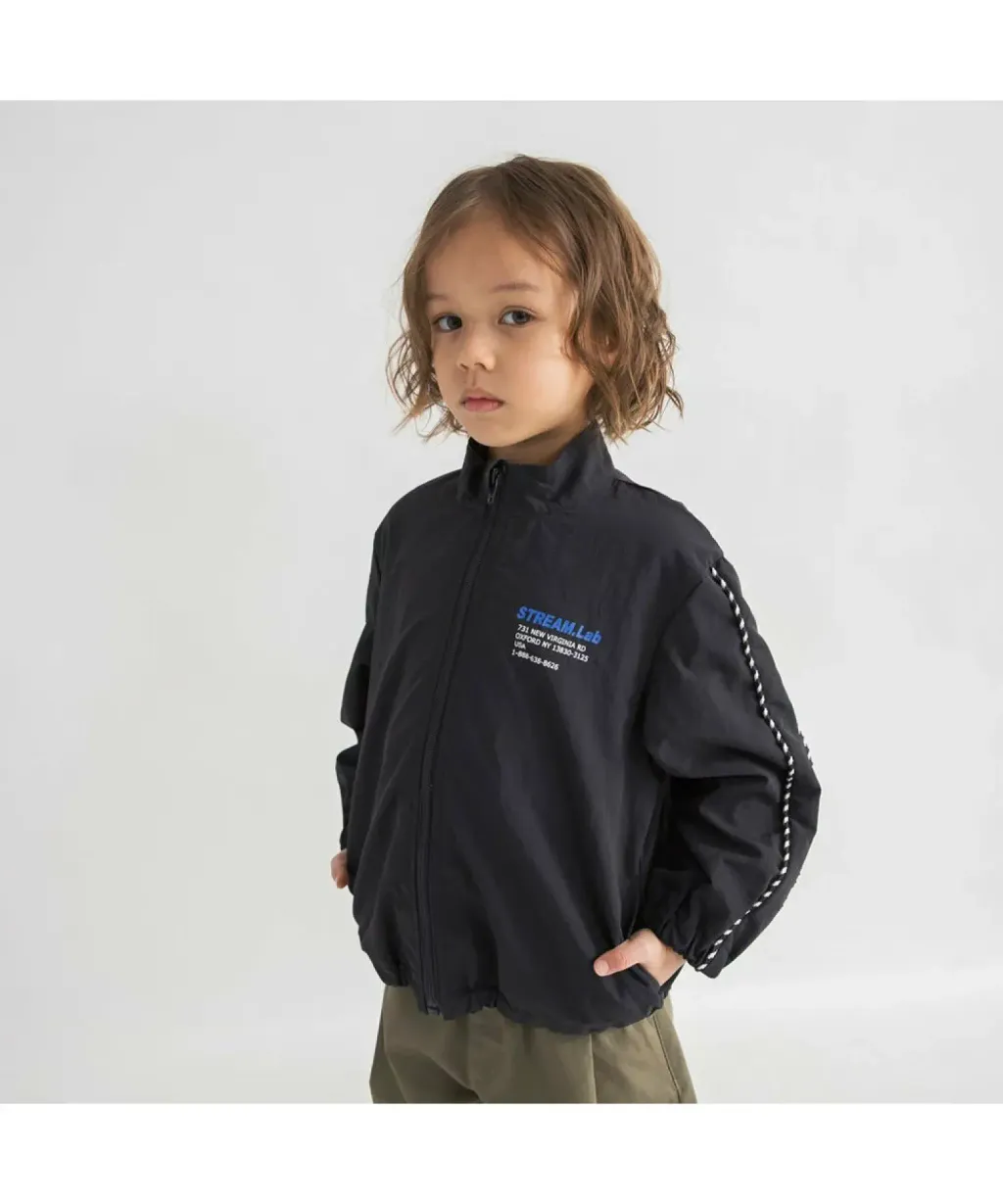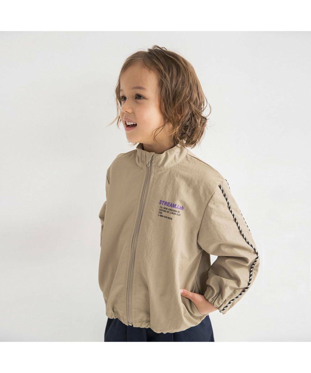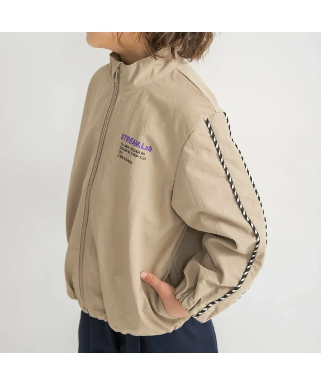袖子飾有條紋的防水尼龍夾克/