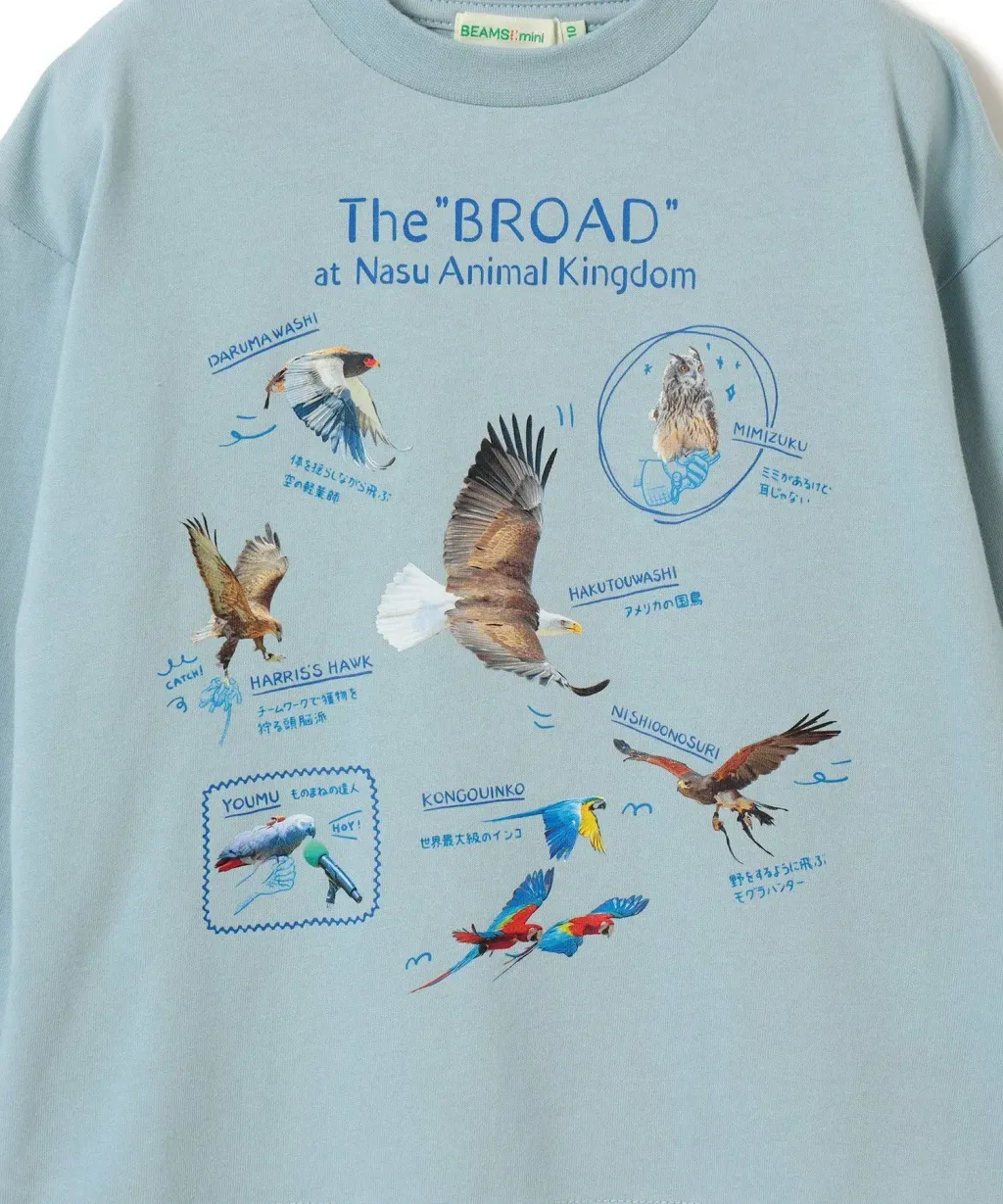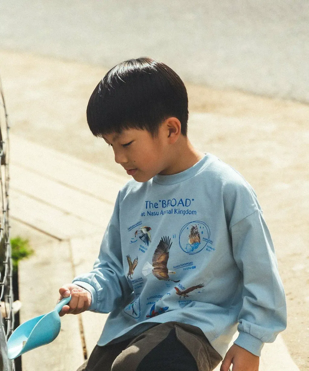 那須動物王國與BEAMSmini首次攜手合作,旨在激發孩子們對動物和自然環境的興趣!這款長袖T卹共有三種款式:“美麗鳥類”,印有那須動物王國飛行表演中出現的各種美麗鳥類的生動照片;“雷鳥的生態”,飾有亮片,展現雷鳥夏冬兩季皮毛的變化,讓孩子們了解日本雷鳥的生態;以及“對野貓的魅力”,以插圖和貼布野貓的魅力,為孩子們提供了一種寓教於樂的方式,讓他們了解動物和自然環境。